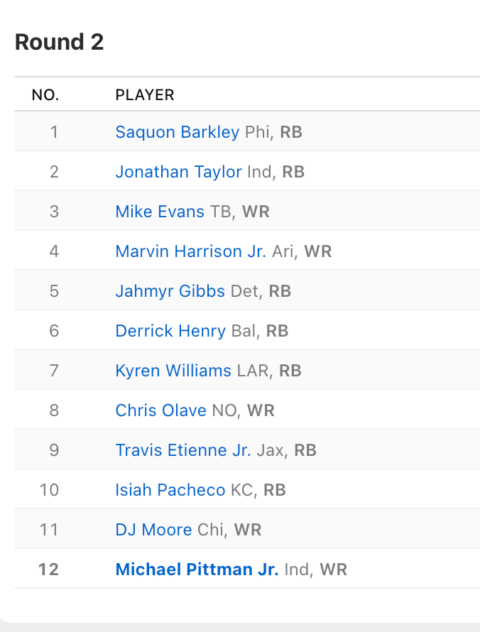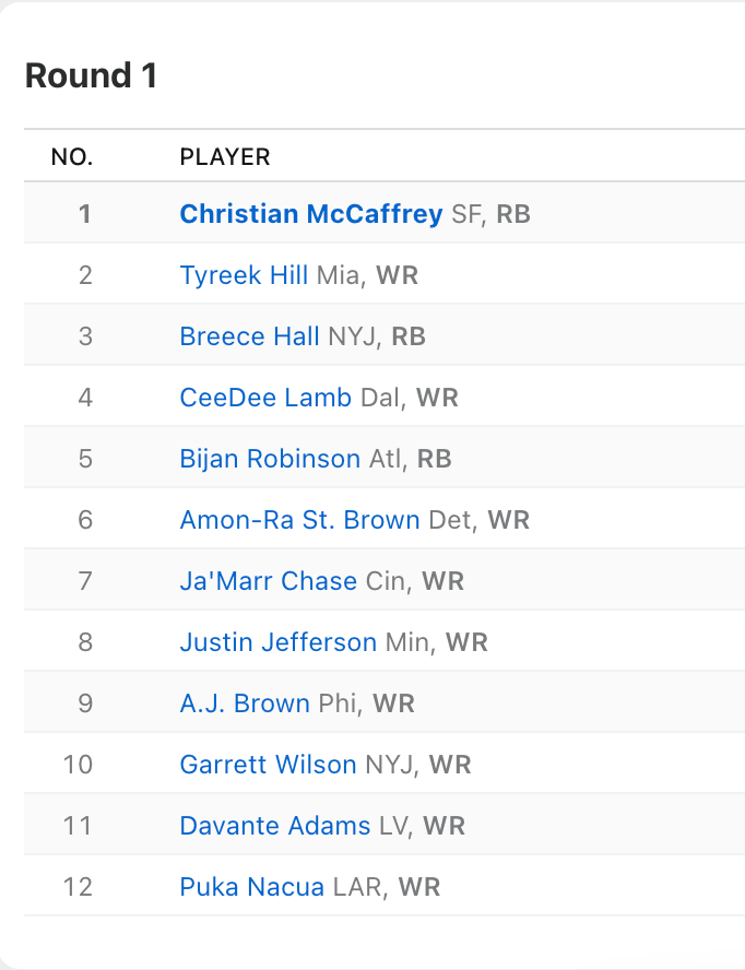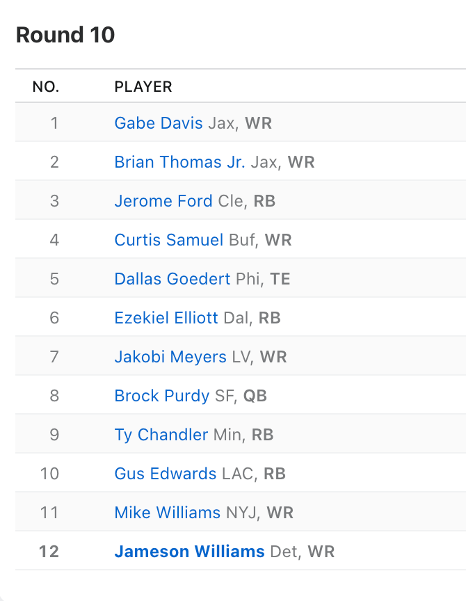 Biggest Reach: Not a reach necessarily, but you could be critical of taking Puka Nacua 12th overall given the knee injury that plagued him through training camp. However, given his performance last season, we completely understand the reasoning.